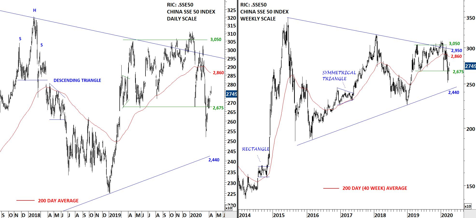 China SSE 50 Index continues to remain volatile. The index has a wide trading range between 2,675 and 3,050 levels. The index managed to remain above the support level at 2,675 levels. The long-term support for China SSE 50 Index is at 2,440 levels. Compared to Global benchmarks, SSE50 Index remained relatively stable in a range. The 200-day moving average is acting as resistance at 2,860 levels.