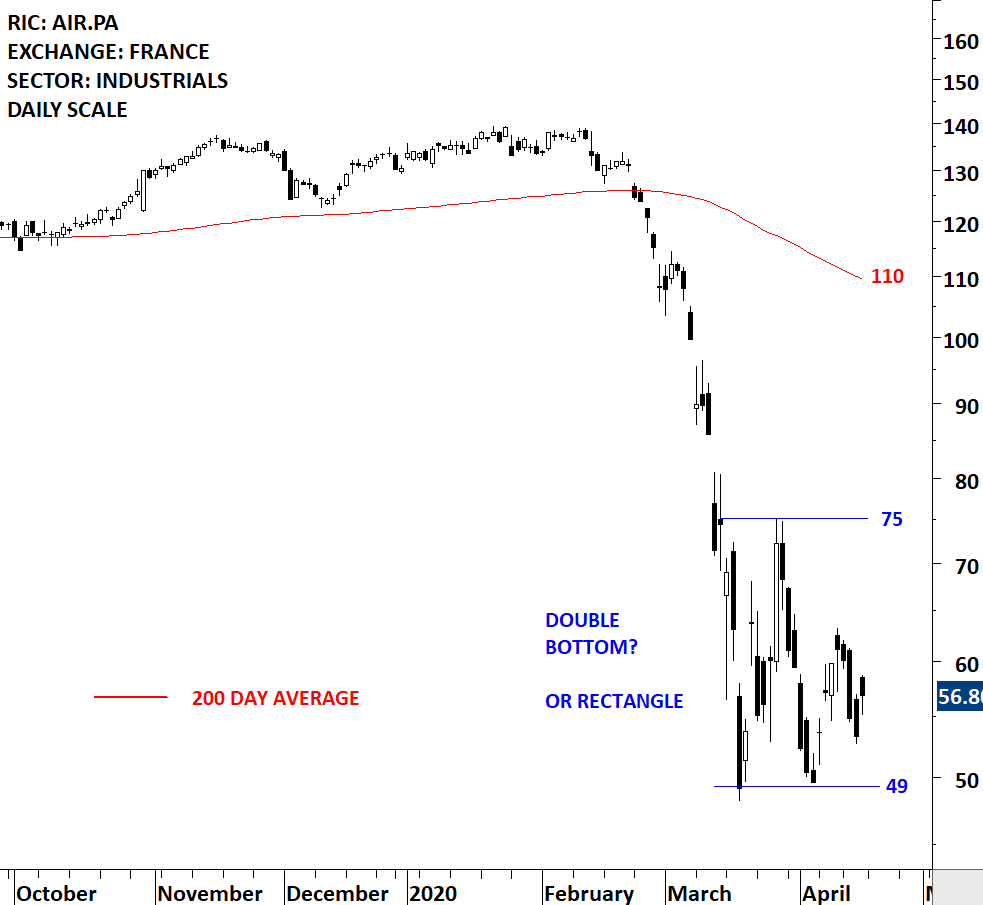 Airbus SE, formerly Airbus Group SE, is a company based in the Netherlands that is active in the aerospace and defense industry. The Company operates through three segments: Airbus, Airbus Helicopters and Airbus Defence and Space. The stock is listed on the Paris Stock Exchange. Price chart is possibly forming a 1 month-long rectangle or a double bottom with the upper boundary acting as resistance at 75.00 levels and the lower boundary as support at 49 levels. Until there is a breakout form the well-defined consolidation this chart does not offer me a trade. However, there are Tech Charts members who trade between those well-defined boundaries and I see this chart as one opportunity that needs to be highlighted. Please note that the stock below its 200-day average. (Learn more: Support & Resistance)