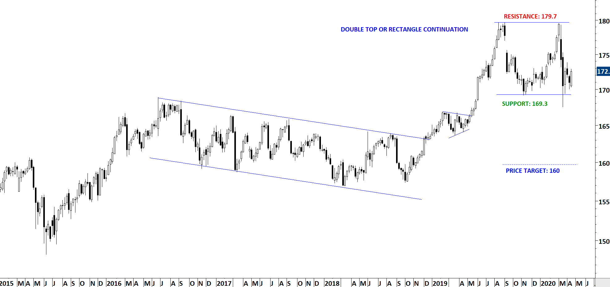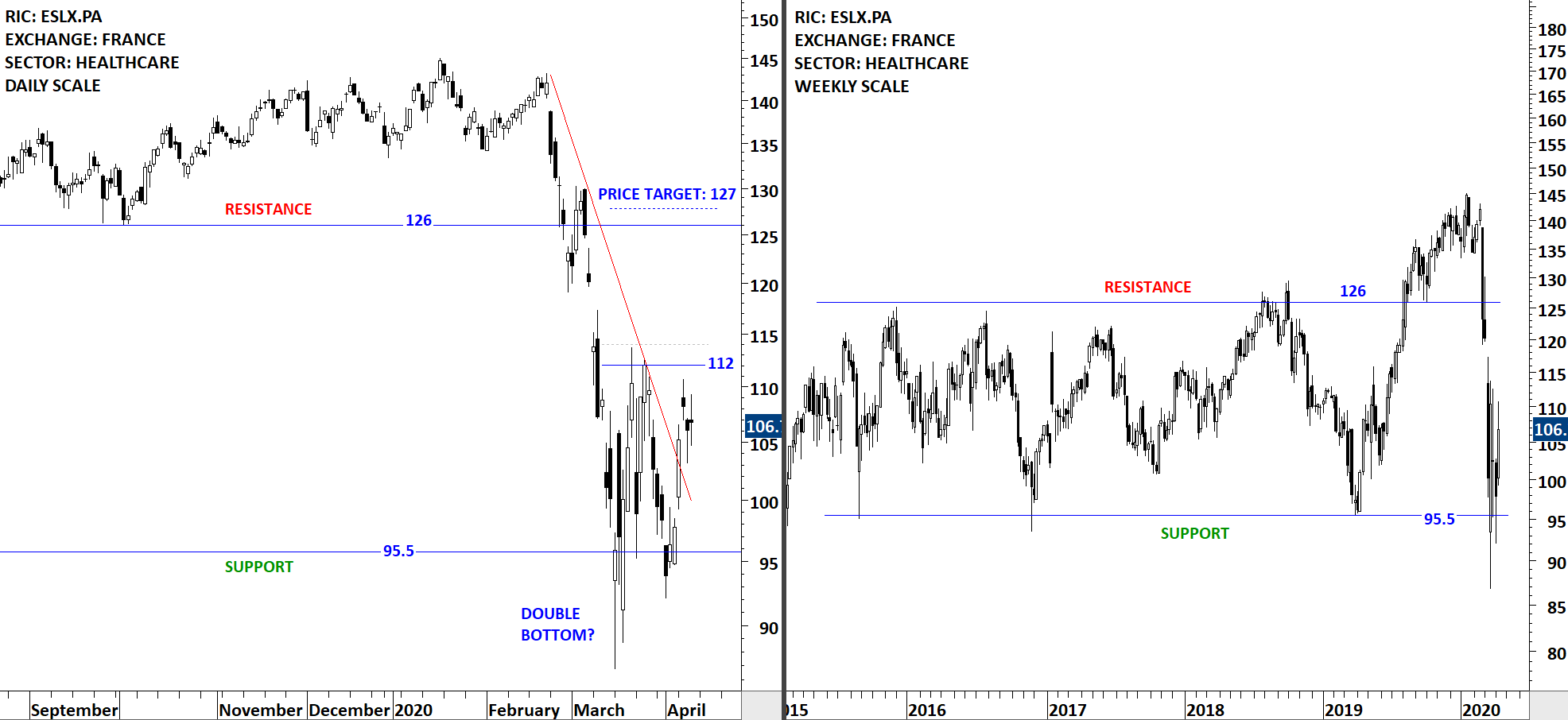 EssilorLuxottica SA, formerly known as Essilor International Compagnie Generale D Optique SA, is a France-based ophthalmic company. The Company designs, manufactures and markets a range of lenses, frames and sunglasses to improve and protect eyesight. The stock is listed on the Paris Stock Exchange. Price chart formed a multi year-long consolidation with the horizontal boundary acting as strong support at 95.5 levels. Stock rebounded from the strong support. 112 levels will act as short-term resistance for the possible double bottom chart pattern. A daily close above 114 levels can confirm the breakout with the price target of 127 levels. (Learn more: Support & Resistance)