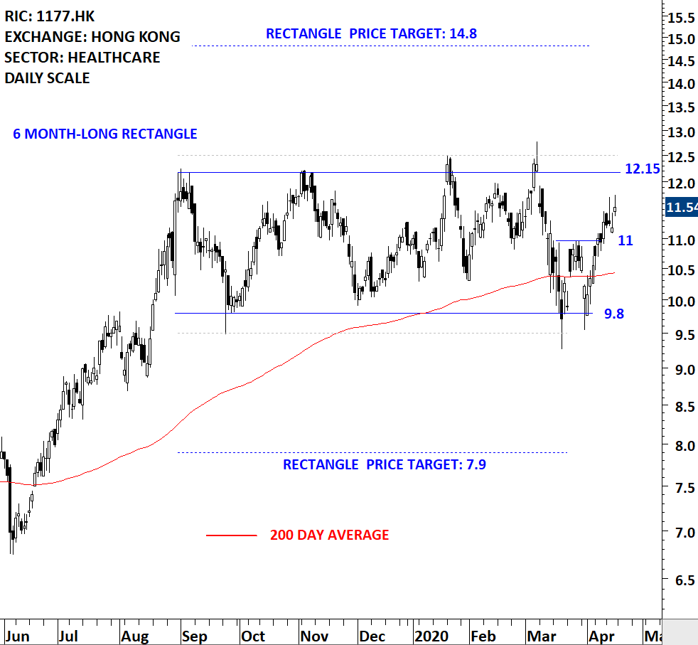 Sino Biopharmaceutical Limited is an investment holding company principally engaged in the medicine products business. The stock is listed on the Hong Kong Stock Exchange. Price chart formed a 6 month-long rectangle with the horizontal boundary acting as strong resistance at 12.15 levels. The horizontal boundary was tested several times over the course of the chart pattern. A daily close above 12.5 levels will confirm the breakout from the 6 month-long rectangle with the possible chart pattern price target at 14.8 levels. A daily close below 9.5 levels can confirm the chart pattern as a rectangle reversal with the price target of 7.9 levels. Short-term resistance was at 11 and price cleared it with last week’s strength. (Learn more: Video Tutorial)