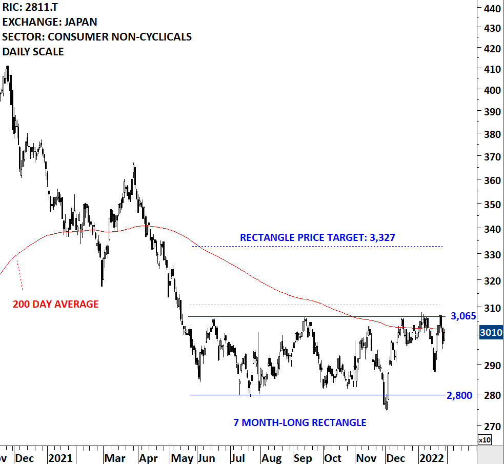 Kagome Co Ltd is a Japan-based company mainly engaged in the manufacture, purchase and sale of foods at home and abroad. The stock is listed on the Tokyo Stock Exchange. Price chart formed a 7 month-long rectangle with the horizontal boundary acting as strong resistance at 3,065.00 levels. The horizontal boundary was tested several times over the course of the chart pattern. A daily close above 3,110.00 levels will confirm the breakout from the 7 month-long rectangle with the possible chart pattern price target of 3,327.00 levels. Rectangle can act as a bottom reversal. (Learn more: Video Tutorial)