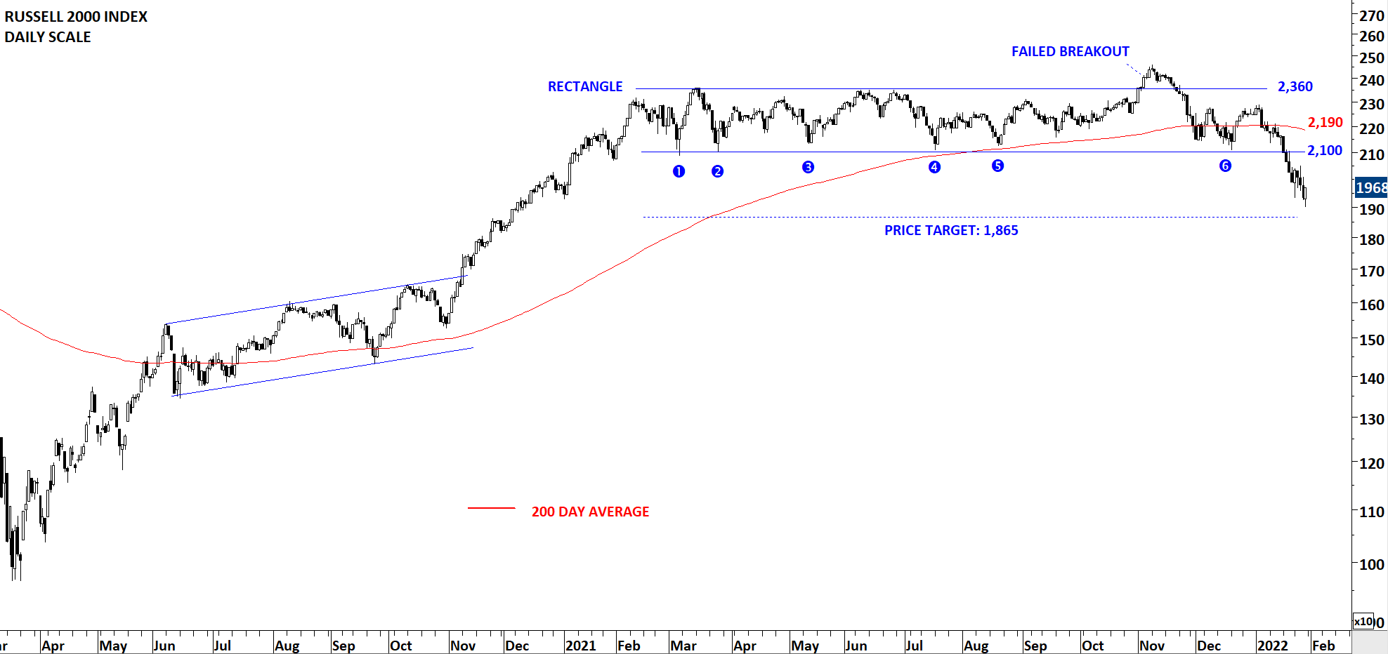 After breaking down support at 2,100 levels the index trended towards the price target at 1,865 levels. In case of a larger scale correction this can be a conservative price target. Russell 2000 can target much lower levels. During any rebound 2,100 will act as resistance. The index is now clearly below the 200-day average.