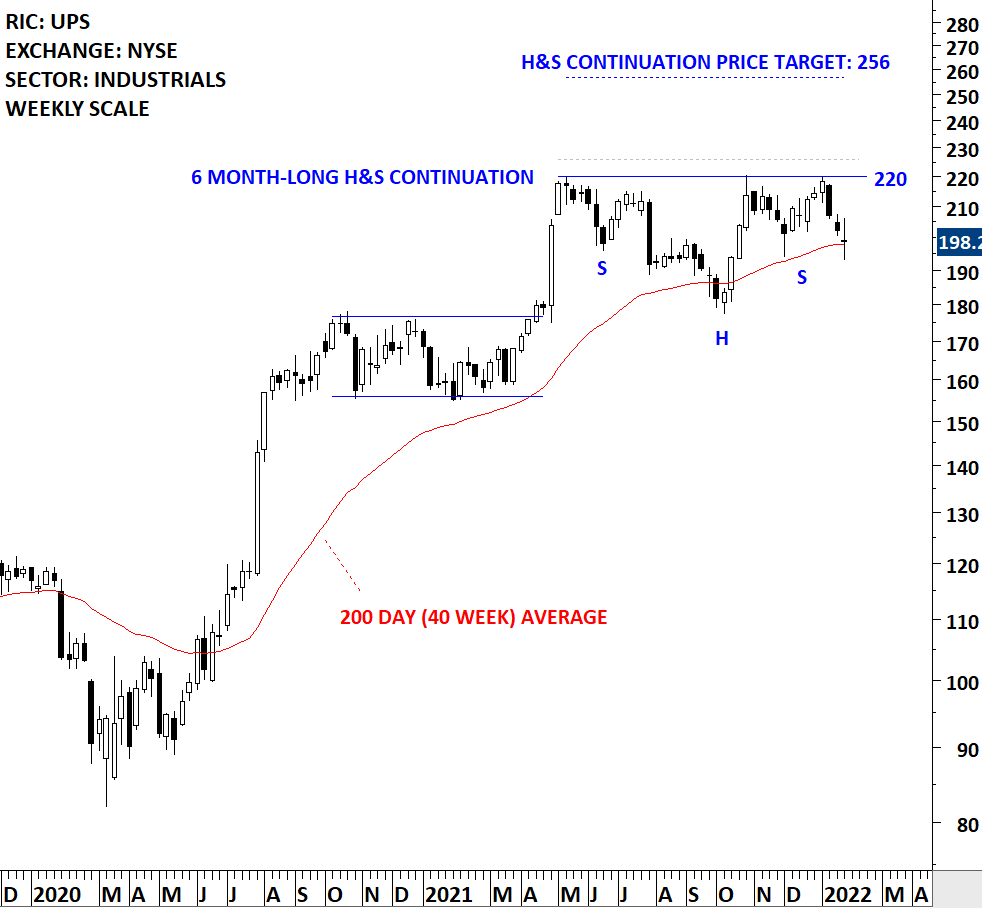 United Parcel Service, Inc. (UPS) is a package delivery company. The Company is a provider of global supply chain management solutions. The Company operates through three segments: U.S. Domestic Package operations, International Package operations, and Supply Chain & Freight operations. The stock is listed on the New York Stock Exchange. Price chart formed a 6 month-long head and shoulder continuation with the horizontal boundary acting as strong resistance at 220.00 levels. The horizontal boundary was tested several times over the course of the chart pattern. A daily close above 226.00 levels will confirm the breakout from the 6 month-long head and shoulder continuation with the possible chart pattern price target of 256.00 levels. (Learn more: Video Tutorial)