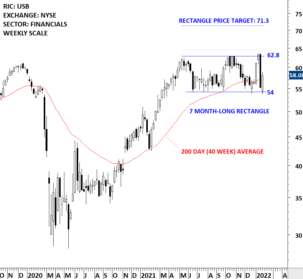 U.S. Bancorp is a financial services holding company. The Company provides a range of financial services, including lending and depository services, cash management, capital markets, and trust and investment management services. The stock is listed on the New York Stock Exchange. Price chart formed a 7 month-long rectangle with the horizontal boundary acting as strong resistance at 62.80 levels. The horizontal boundary was tested several times over the course of the chart pattern. A daily close above 64.50 levels will confirm the breakout from the 7 month-long rectangle with the possible chart pattern price target of 71.30 levels. Until there is a breakout the stock offers trading opportunity between boundaries. (Learn more: Video Tutorial)