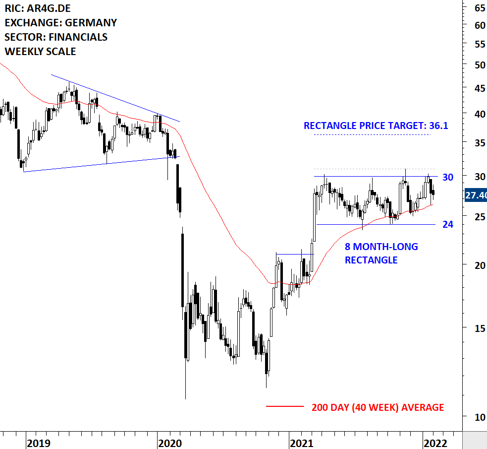 Aurelius Equity Opportunities SE & Co. KGaA is a Germany-based investment company, which concentrates primarily on the segments information technology and business services, industrials and chemicals, and lifestyle and consumer goods. The stock is listed on the Frankfurt Stock Exchange. Price chart formed an 8 month-long rectangle with the horizontal boundary acting as strong resistance at 30.00 levels. The horizontal boundary was tested several times over the course of the chart pattern. A daily close above 30.90 levels will confirm the breakout from the 8 month-long rectangle with the possible chart pattern price target of 36.10 levels. (Learn more: Video Tutorial)