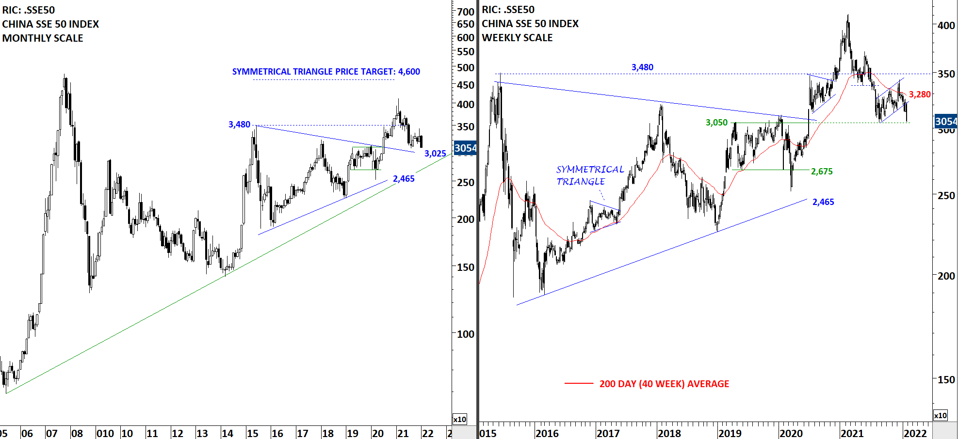 China SSE 50 Index failed to settle above the 200-day average. Last 3 months upward channel is possibly acting as a bearish continuation as the index failed to recover above the 200-day average at 3,315 levels. China SSE 50 Index continues to remain in a downtrend. I will monitor price action around the minor low for a possible rebound.