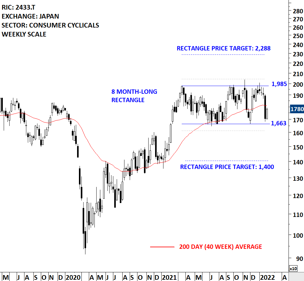 HAKUHODO DY HOLDINGS INCORPORATED is a Japan-based advertising holding company that is mainly engaged in the provision of marketing solution as a marketing service company. The stock is listed on the Tokyo Stock Exchange. Price chart formed an 8 month-long rectangle with the horizontal boundary acting as strong resistance at 1,985.00 levels. The horizontal boundary was tested several times over the course of the chart pattern. A daily close above 2,045.00 levels will confirm the breakout from the 8 month-long rectangle with the possible chart pattern price target of 2,288.00 levels. A daily close below 1,613 levels will confirm the breakdown with the price target of 1,400 levels. (Learn more: Video Tutorial)