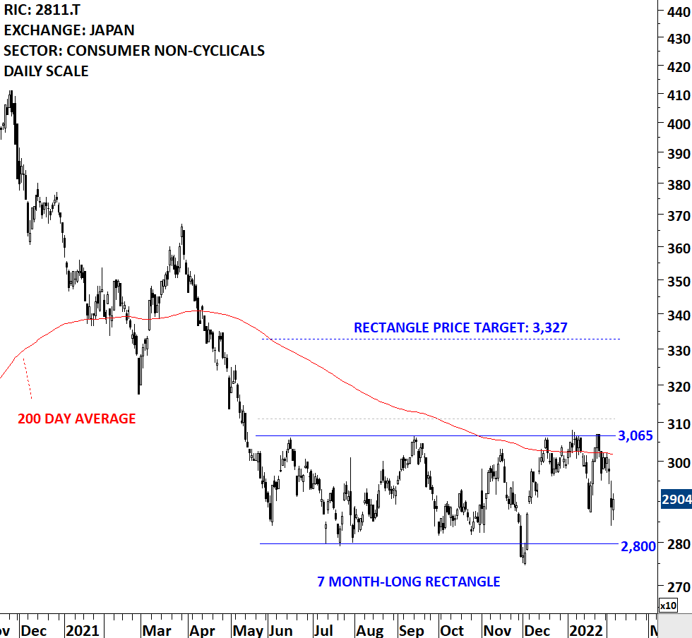 Kagome Co Ltd is a Japan-based company mainly engaged in the manufacture, purchase and sale of foods at home and abroad. The stock is listed on the Tokyo Stock Exchange. Price chart formed a 7 month-long rectangle with the horizontal boundary acting as strong resistance at 3,065.00 levels. The horizontal boundary was tested several times over the course of the chart pattern. A daily close above 3,110.00 levels will confirm the breakout from the 7 month-long rectangle with the possible chart pattern price target of 3,327.00 levels. Rectangle can act as a bottom reversal. (Learn more: Video Tutorial)