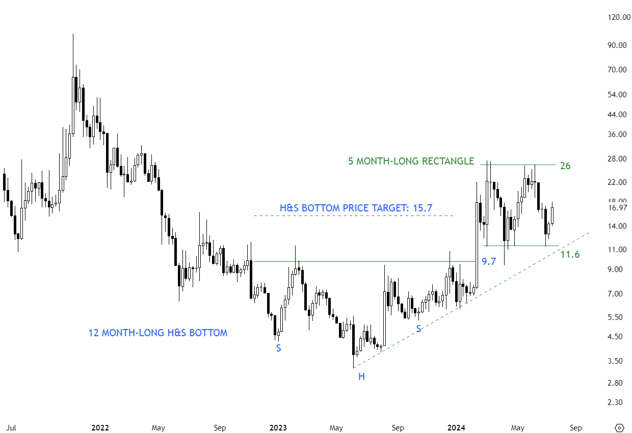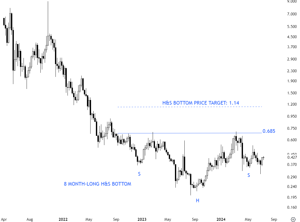1INCUSD is one of those pairs that might be forming a multi-month long bottom reversal. The horizontal neckline is acting as resistance at 0.685 levels. A sharp rally towards the horizontal neckline can form the right shoulder and offer a higher conviction setup. The pattern will be confirmed after a breakout above 0.685 levels and offer a price target of 1.14 levels.