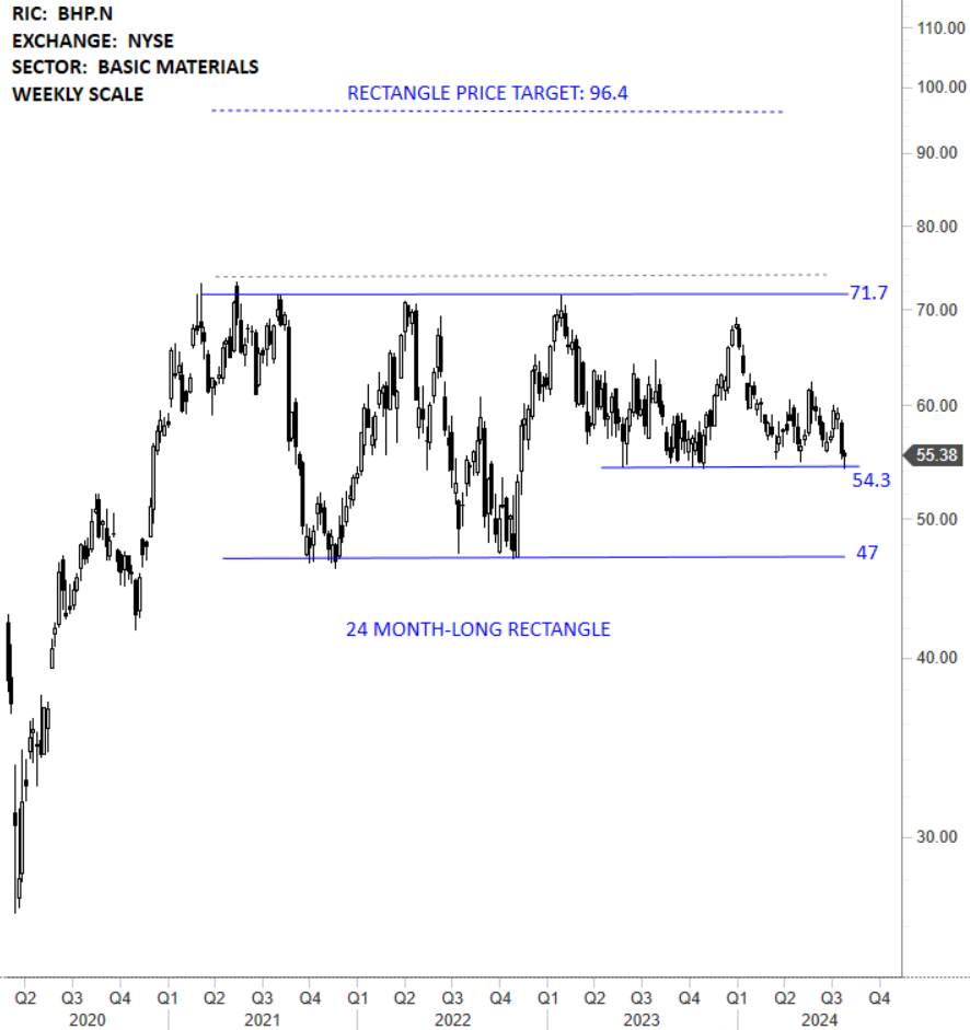 BHP Group Limited is an Australia-based resources company. The Company is a producer of commodities, including iron ore, copper, nickel, potash and metallurgical (steelmaking) coal. The stock is listed on the New York Stock Exchange. Price chart formed a 24 month-long rectangle with the horizontal boundary acting as strong resistance at 71.70 levels. The horizontal boundary was tested several times over the course of the chart pattern. A daily close above 73.80 levels will confirm the breakout from the 24 month-long rectangle with the possible chart pattern price target of 96.40 levels. (Learn more: Video Tutorial)