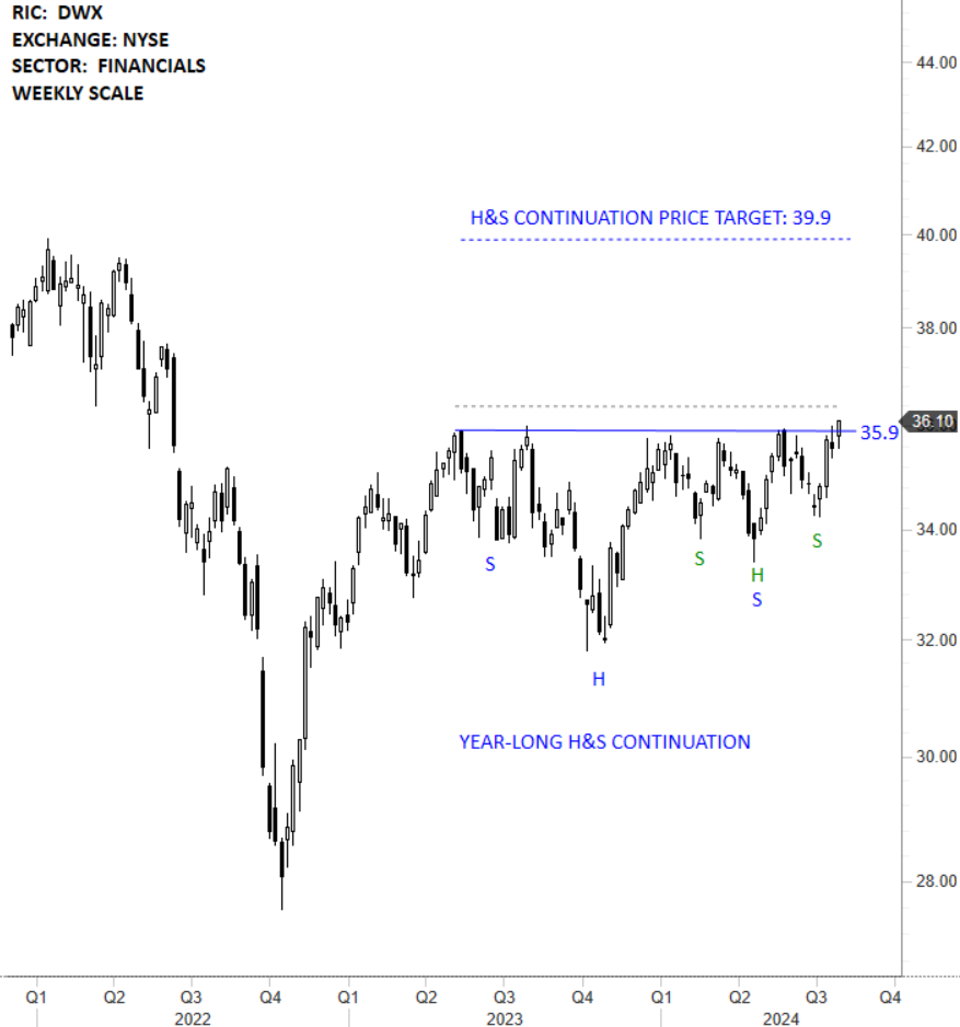 The SPDR® S&P® International Dividend ETF seeks to provide investment results that, before fees and expenses, correspond generally to the total return performance of the S&P® International Dividend Opportunities® Index (the “Index”). The stock is listed on the New York Stock Exchange. Seeks to provide exposure to the 100 highest yielding international common stocks that have passed certain sustainability and earnings growth screens. Price chart formed a 12 month-long head and shoulder continuation with the horizontal boundary acting as strong resistance at 35.90 levels. The horizontal boundary was tested several times over the course of the chart pattern. A daily close above 36.40 levels will confirm the breakout from the 12 month-long head and shoulder continuation with the possible chart pattern price target of 39.90 levels. (Learn more: Video Tutorial)