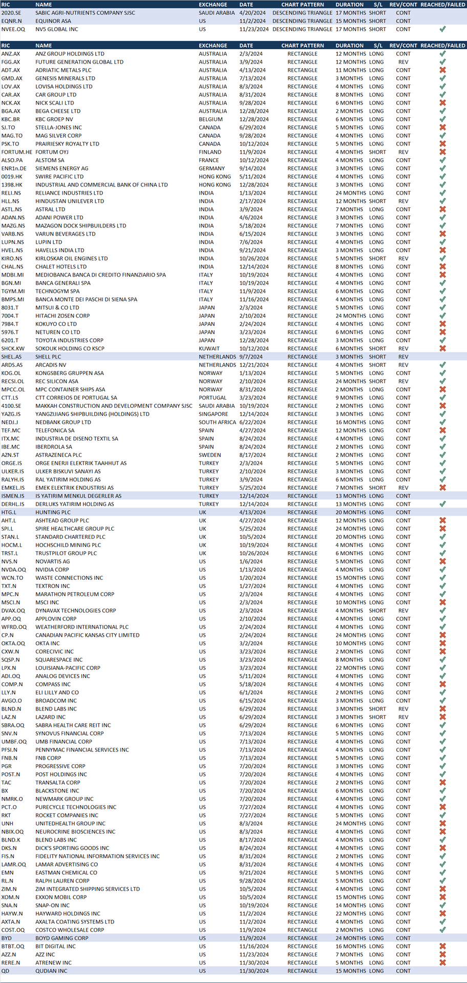 CHART PATTERN BREAKOUT SIGNALS (RANKED BY PATTERN & COUNTRY)