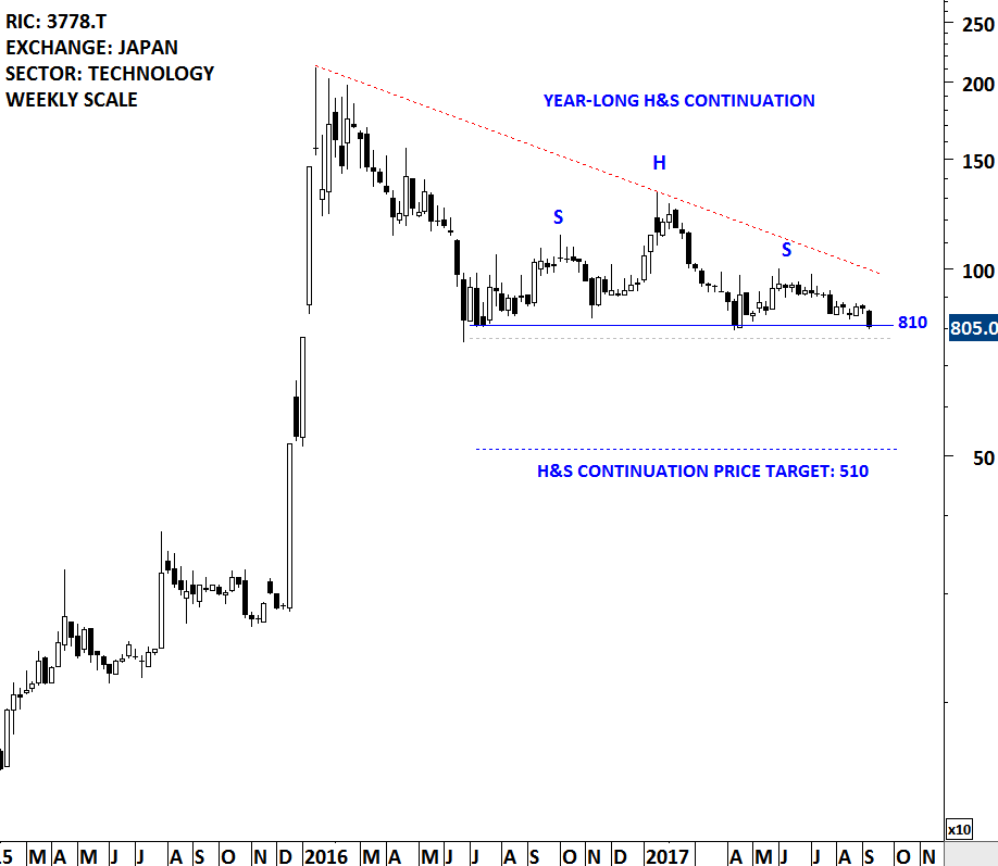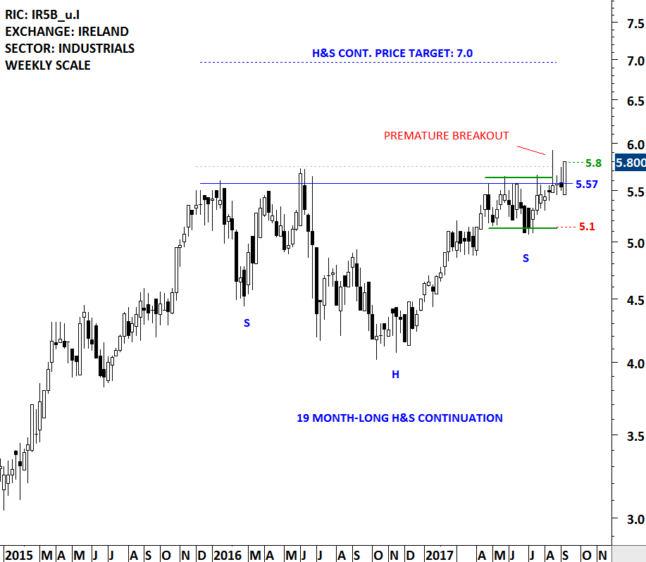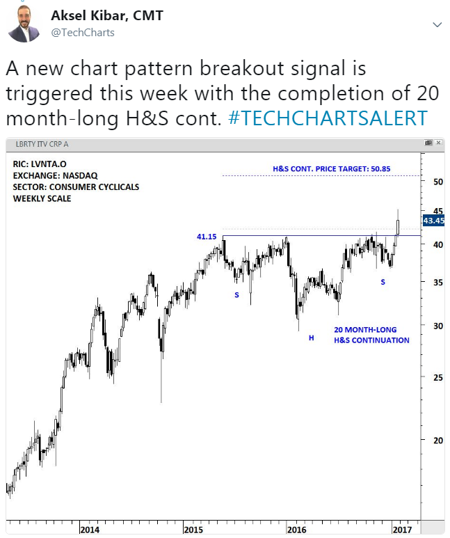 As it is the case with different classical chart patterns, H&S reversals can fail. However, the failure of this specific reversal chart pattern can be more informative than other classical chart pattern failures. Both the failure of a H&S after a confirmed breakdown of the neckline or failure without completing the chart pattern with a decisive breakout, would invalidate the earlier interpretation. The failure, once confirmed, would help us set price targets for the newly established trend. A breach above/below the right shoulder would negate the chart pattern and confirm it as a H&S failure. H&S failure chart pattern price target is calculated by taking the width of the chart pattern between the Head and the neckline and adding it to the highest point of the right shoulder (for H&S top reversal failures). Below are some examples. I plan to highlight more H&S failures in the Tech Charts Alert section as they take place. The next educational video will be on H&S failures and will discuss the fine points of this important chart pattern development.